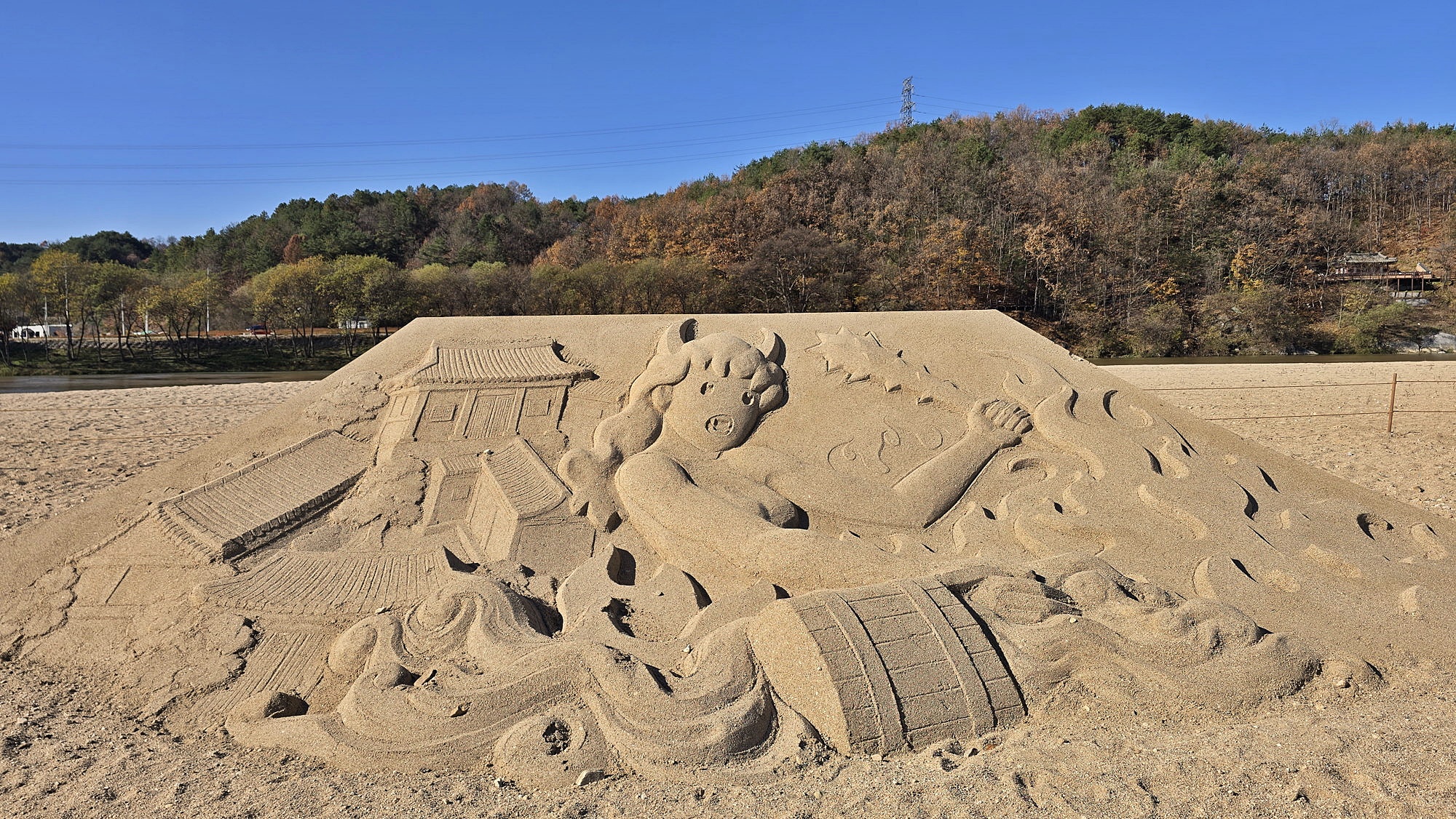 무섬마을은 물 위에 떠 있는 섬을 뜻하는 수도리(水島里)의 우리말 이름으로 삼면이 내성천과 접해 있는 전형적인 물도리 마을로 마을 앞을 돌아나가는 내성천은 맑고 잔잔하며 산과 물이 태극 모양으로 서로 안고 휘감아 돌아 산수의 경치가 절경을 이룬다.